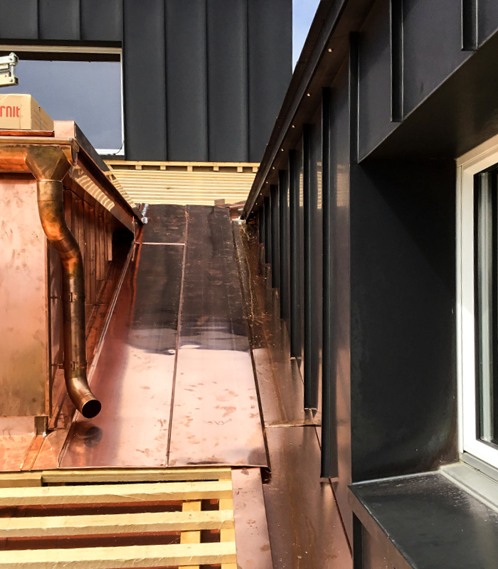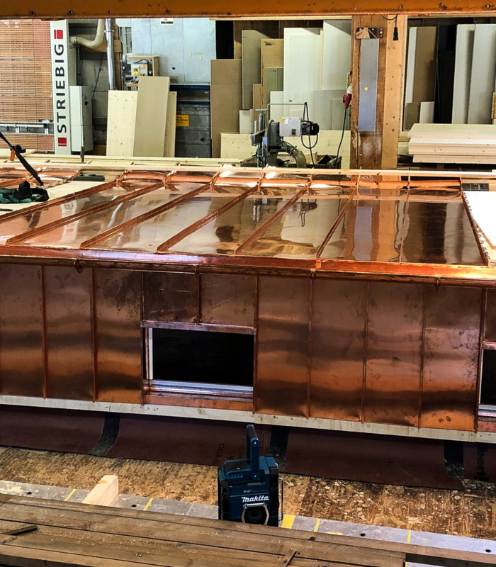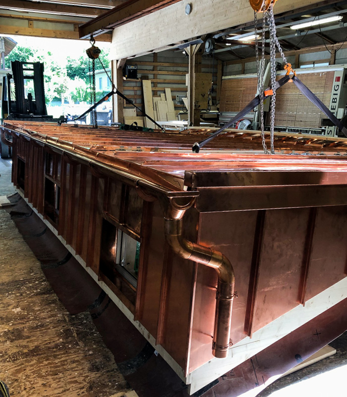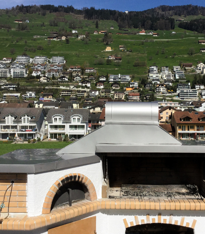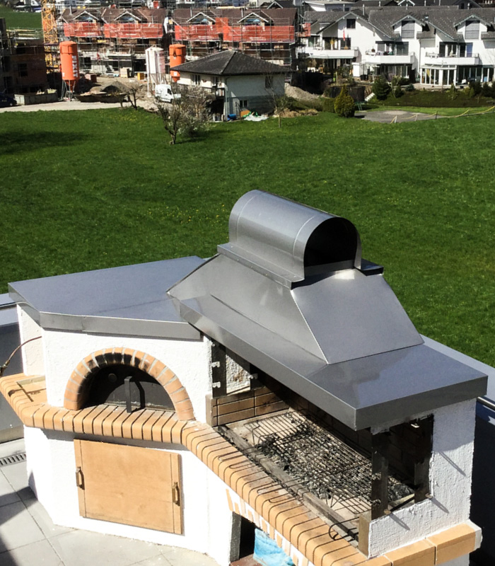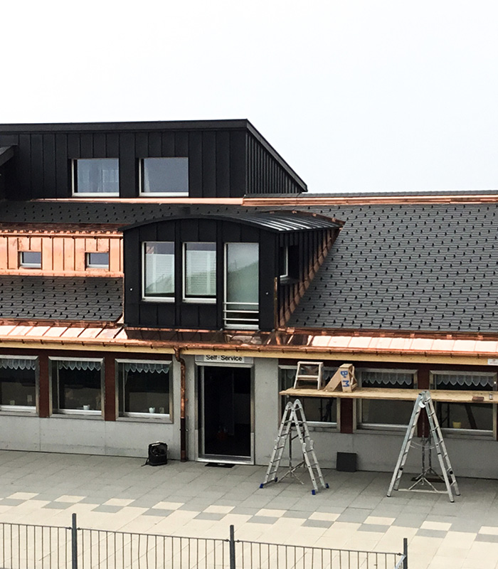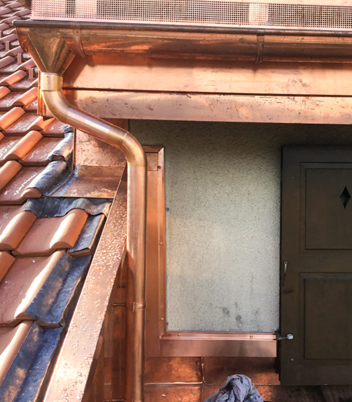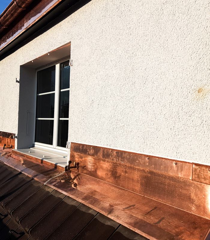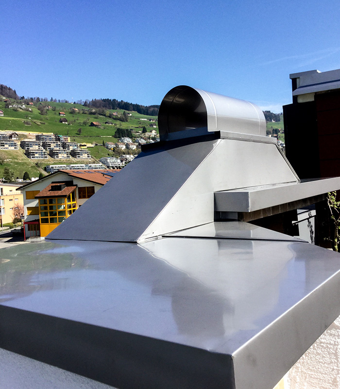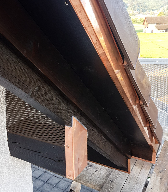 Wir arbeiten mit hochwertigen Materialien aus Kupfer, Chromstahl oder Prefa-Aluminium, welches in diversen Farben erhältlich ist.