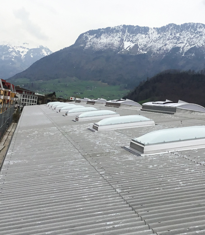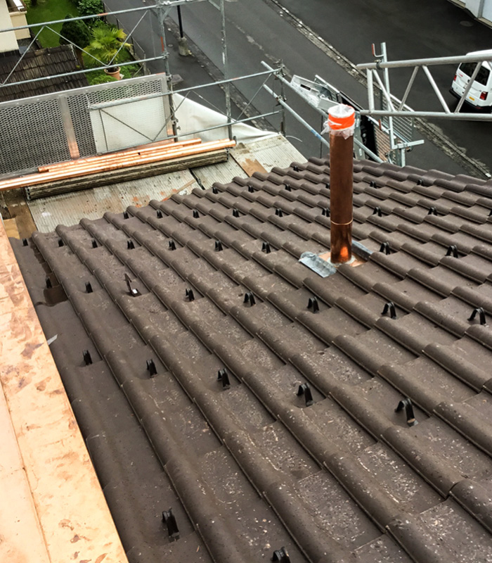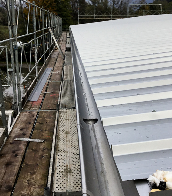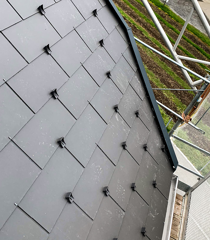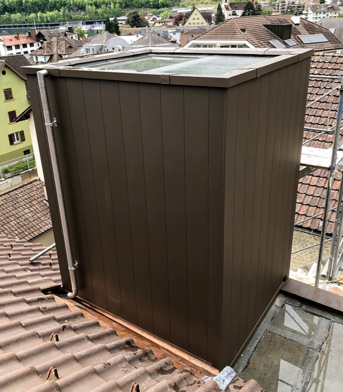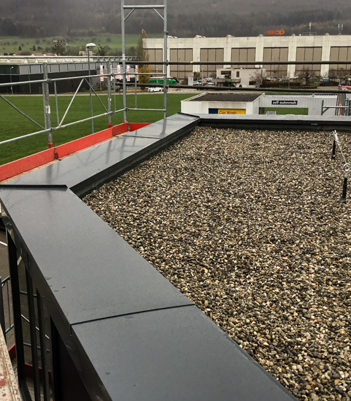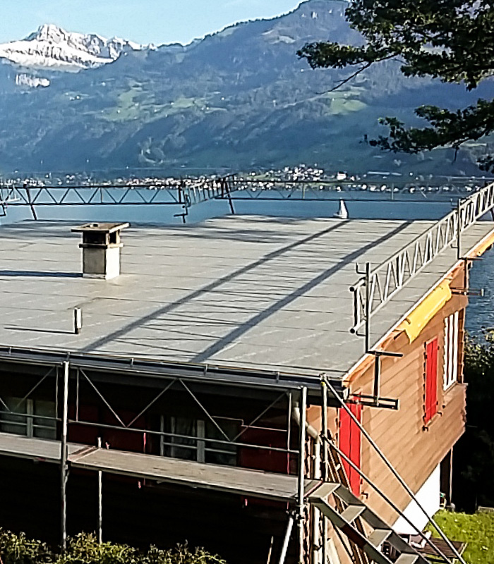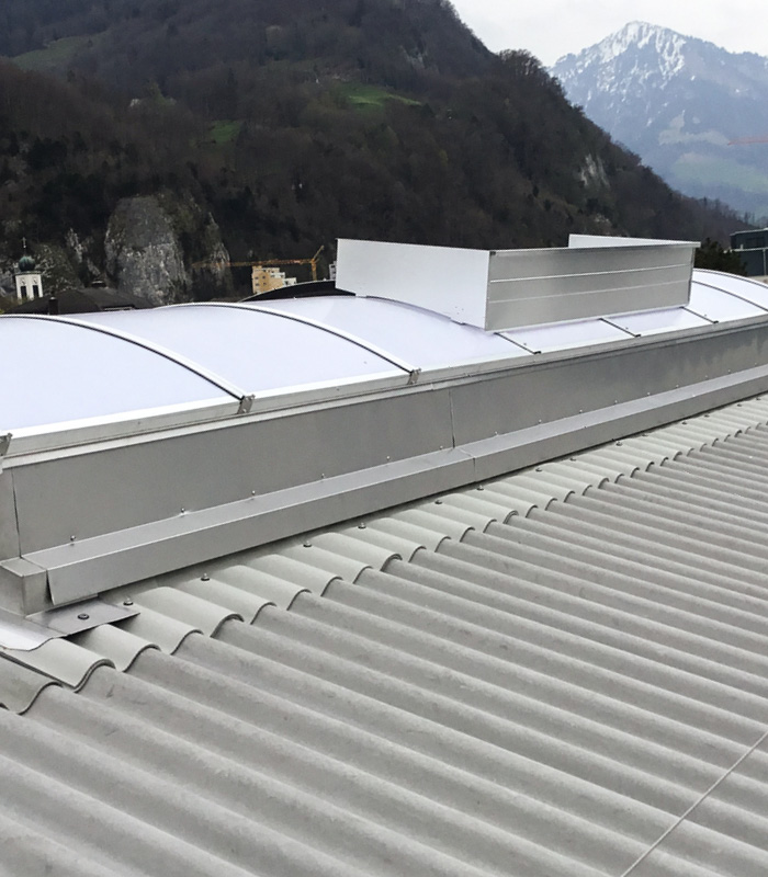 Mit dem Montieren von Falzdächern, Verkleiden von Kaminen sowie dem Anbringen von Dachrinnen, Ablaufrohren oder Blitzschutzanlagen vollenden wir Ihre Dachbauten fachkundig.