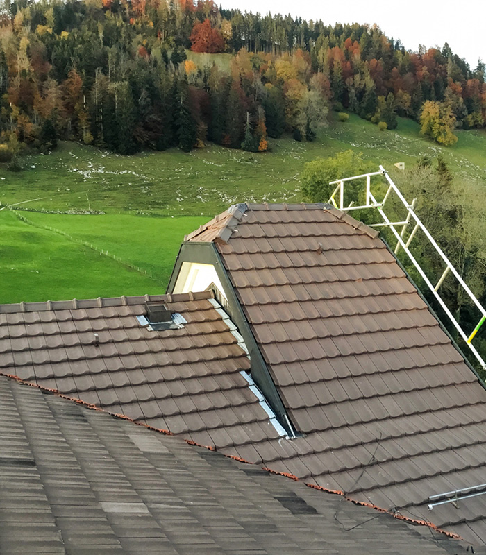 Mit Leichtigkeit bewegt sich der Wallimann-Trupp gekonnt und mit bedacht auf den Dächern der Kundschaft. Hier ist Ihr Profi am Werk. Nicht umsonst nennt sich das eingeschworene Team die Dach- und Fassadenakrobaten.