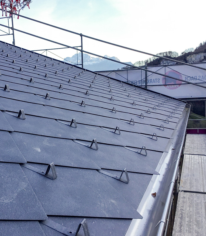 Um der Gefahr von Dachlawinen vorzubeugen installieren wir verschiedenste Schneefangsysteme für sämtliche Bedachungsarten.